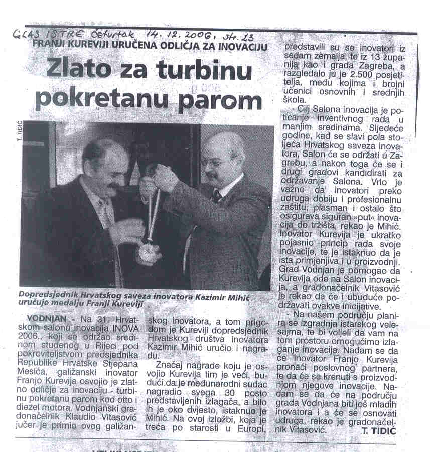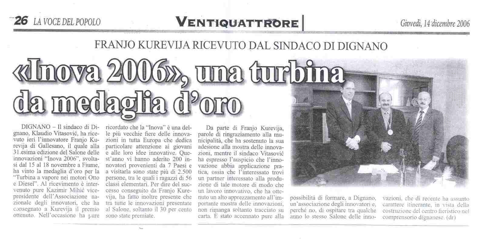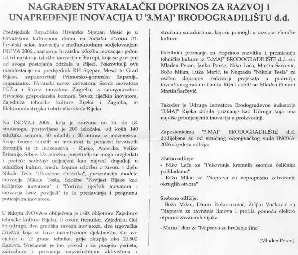 Isječci iz tiskovina i drugih medija o INOVI 2006 (2. dio): NOVI LIST GLAS ISTRE LA VOCE MOJ GRAD ŠIBENSKI LIST T-PORTAL 3. MAJ - INFORMACIJE POSLOVNE PRILOŽNOSTI |