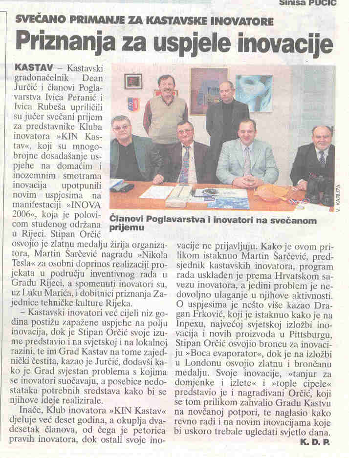 INOVA i dalje aktualna... Događaji nakon INOVE 2006. još čine ovaj događaj aktualnim. Niz primanja nagrađenih inovatora, pozivi za suradnju u novim projektima, dozvoljavaju da ovogodišnji 31. hrvatski salon inovacija svrstamo u posebno uspješni projekt. Ovogodišnji salon nije pobudio samo lokalnu pažnju nego se o INOVI govori širom republike Hrvatske, a nešto se publicira i izvan granica. Lijepo je što se govori sve najbolje o domaćinu Gradu Rijeci i o organizatoru koji je ovom izložbom pokazao da i izložbe inovacija mogu biti atraktivne.